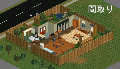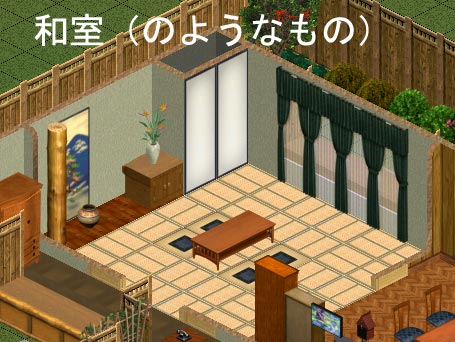 座布団に見えるのはデザイン畳床です。(公式からDLしたもの?)
